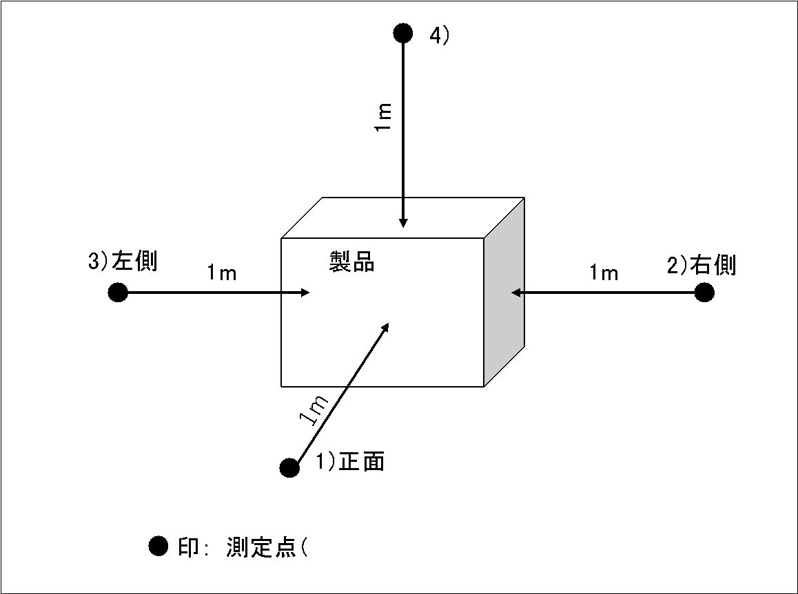 騒音試験は、無響室内に対象の製品を設置し、製品の周囲1~4カ所程度(製品により異なる)における騒音を、JIS Z 8731で規定する方法により測定します。