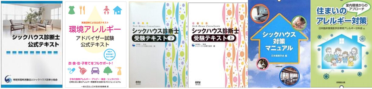 シックハウス診断士協会のテキスト(アレルギー診断士(一般社団法人日本環境保健機構)、シックハウス診断士(オーム社))、日本臨床環境医学会「住まいのアレルギー対策―室内環境からのアプローチ」(技法堂出版)、日本建築学会「シックハウス対策マニュアル」(技法堂出版)などの発刊実績あり。